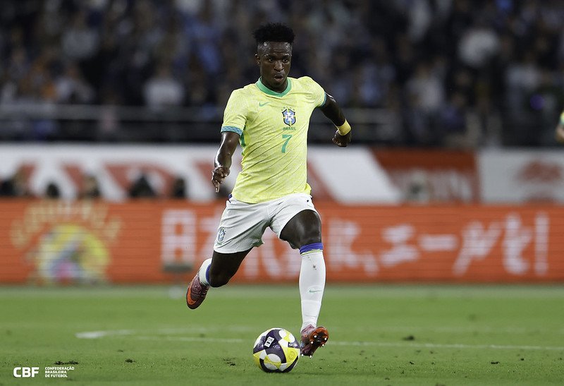 O atacante Vini Jr., em jogo da Seleção Brasileira (Foto: Reprodução do Instagram@rafaelribei...