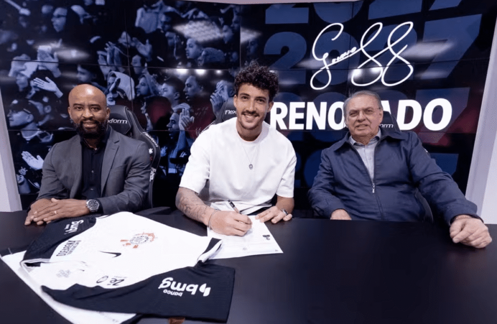 O Corinthians iniciou a semana confirmando duas renovações de contrato no CT Joaquim Grava. O zagueiro Gustavo Henrique estendeu seu vínculo até dezembro de 2027, enquanto o lateral-direito João Vitor, revelado nas categorias de base, assinou um novo acordo válido até outubro de 2029.